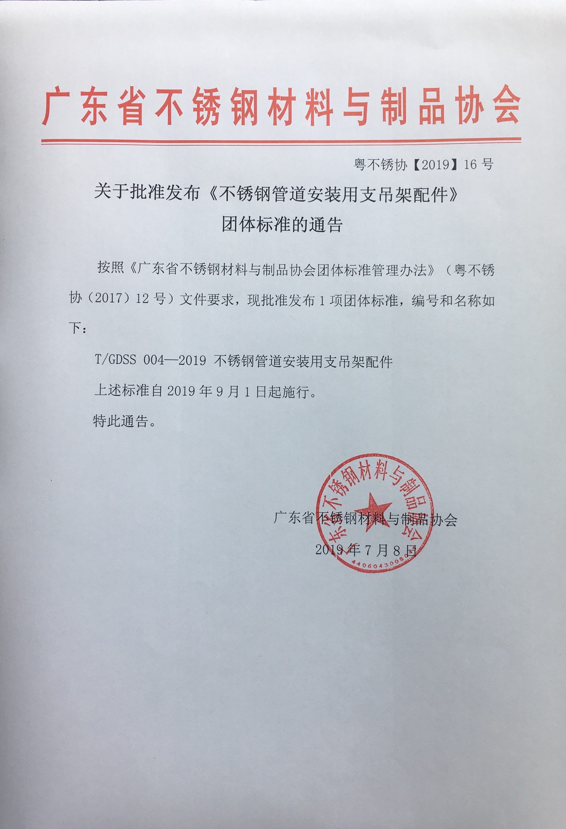 《不锈钢管道安装用支吊架配件》团体标准正式发布