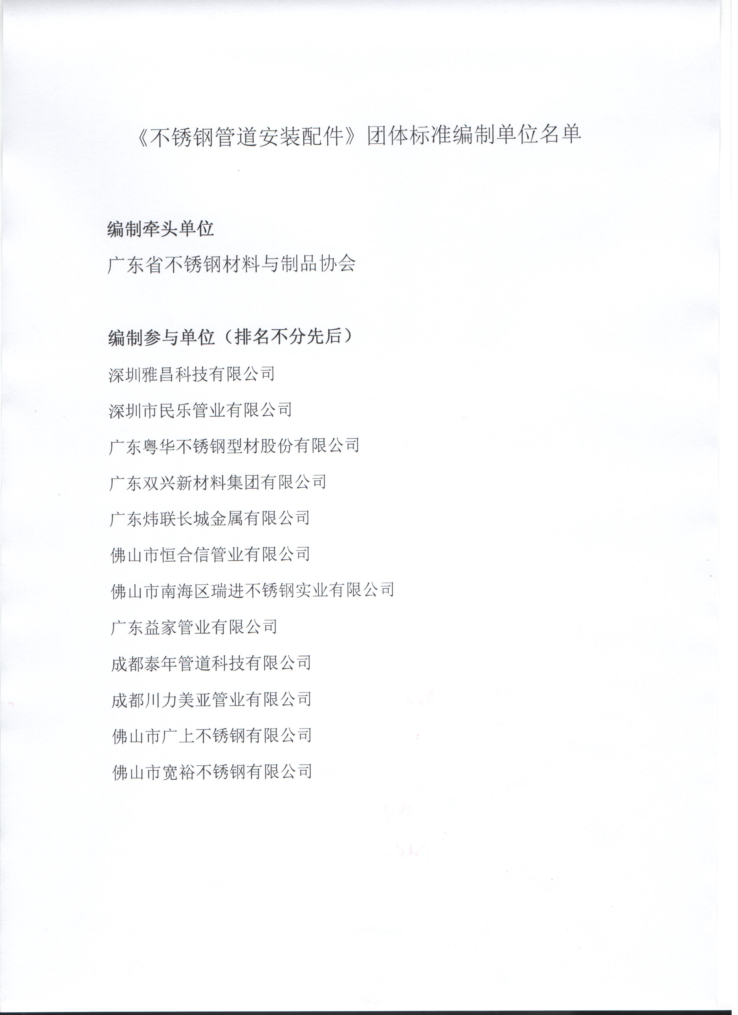 附件:《不锈钢管道安装配件》团体标准编制单位名单
