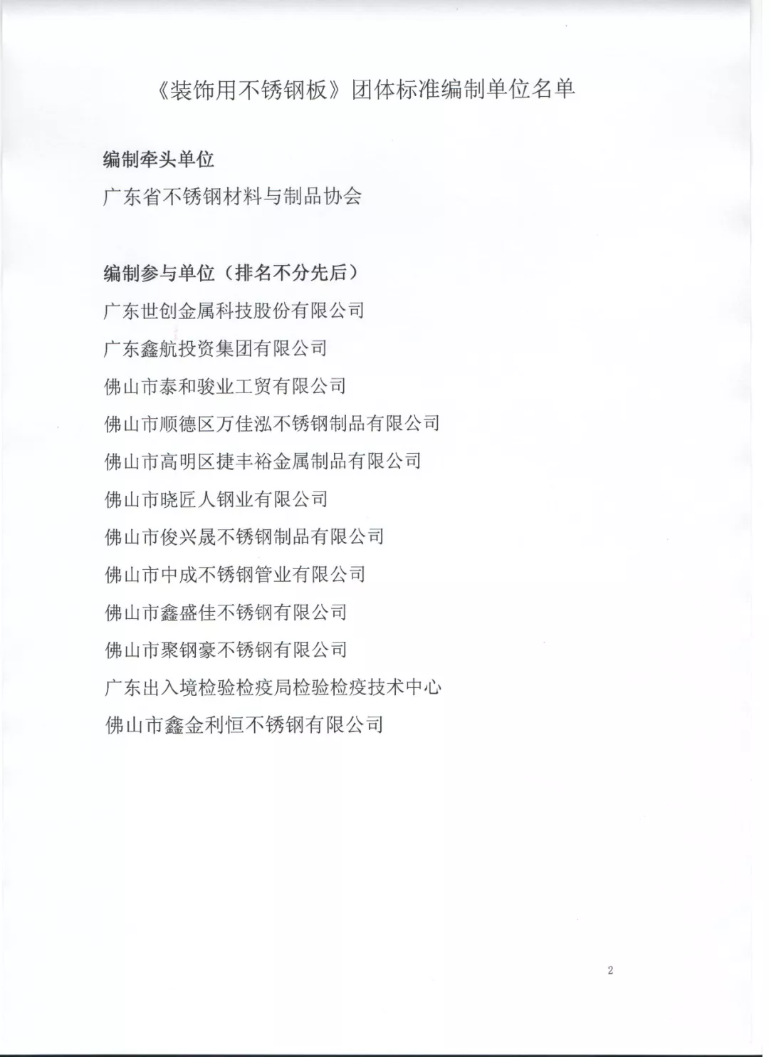 附件:《装饰用不锈钢板》团体标准编制单位名单