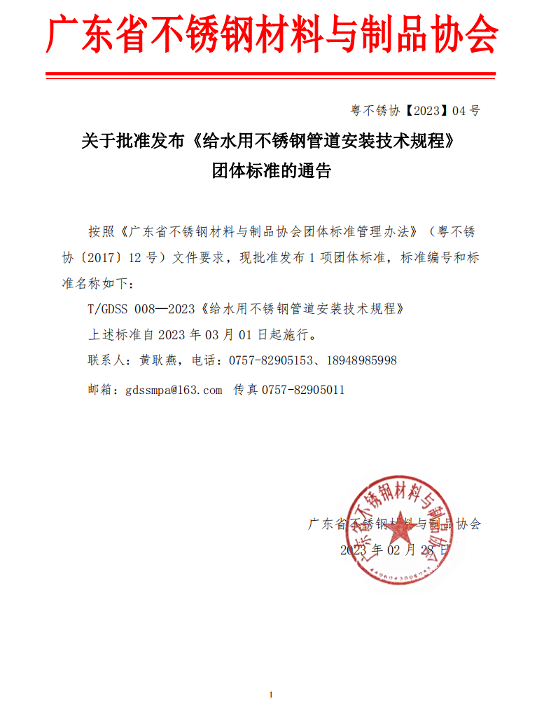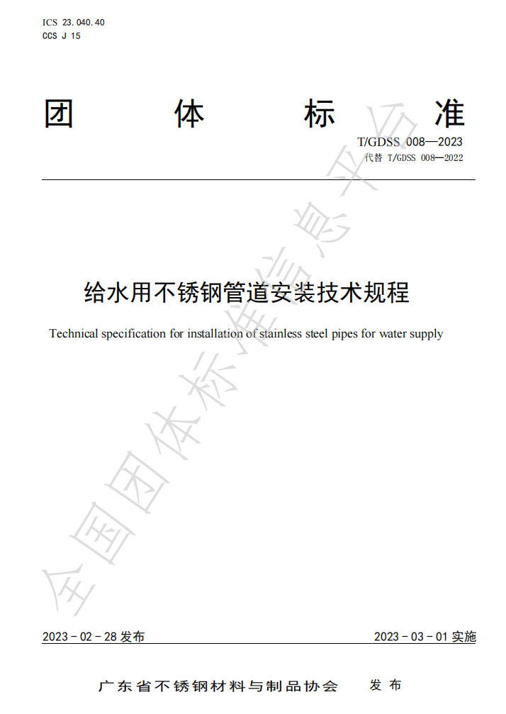 《不锈钢管道安装技术规范》团体标准即将出版发行