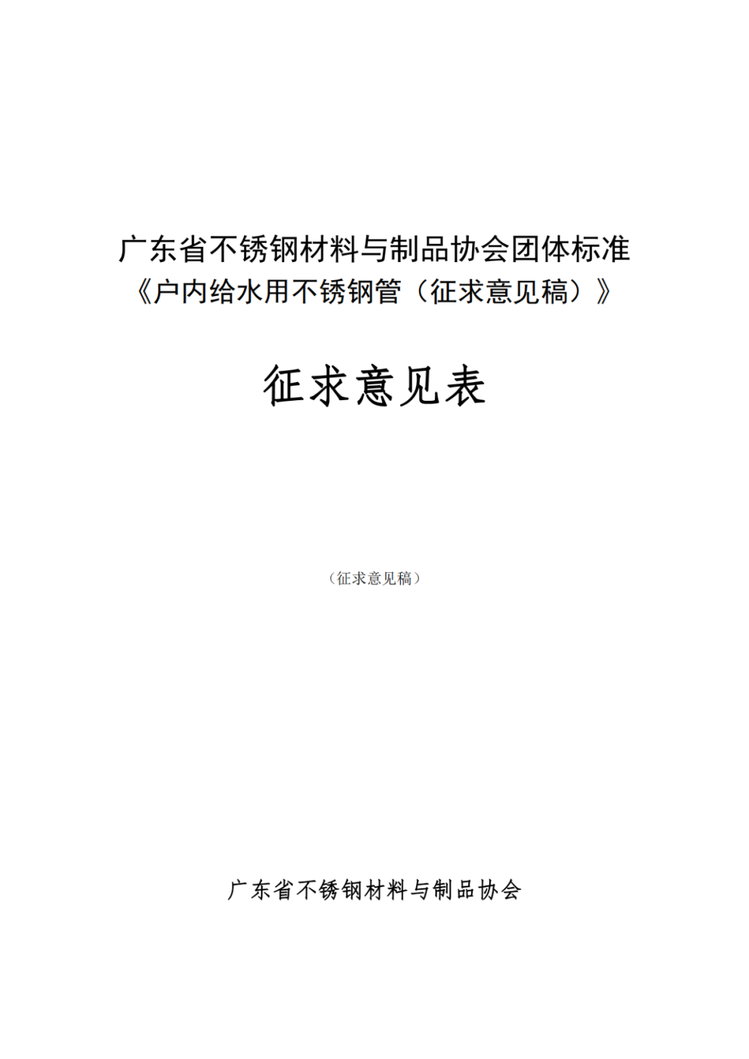 《户内给水用不锈钢管》公开征求意见