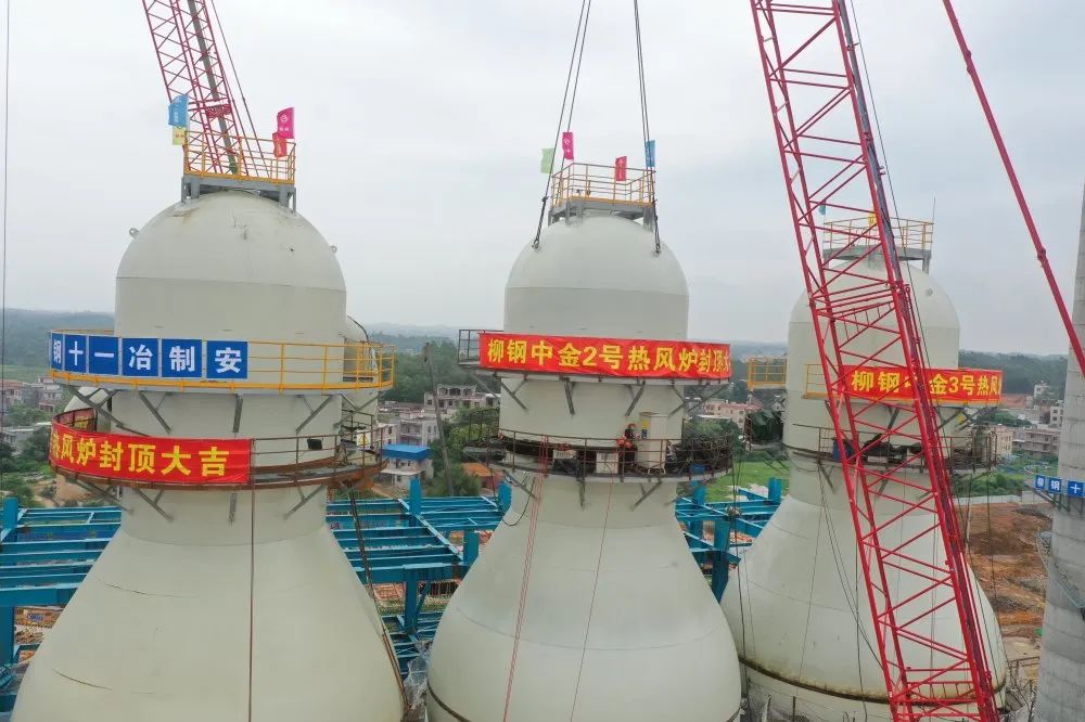 柳钢中金镍铁冶炼项目炼铁系统热风炉顺利封顶