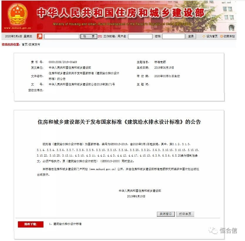 近年来,国家有关部门高度重视居民用水安全和饮水卫生,出台了一系列的新标准和规范,对不锈钢水管优势的认知程度逐年上升,重视程度亦日益彰显。其中,住建部和市场监管总局联合发布的新国标《绿色建筑评价标准》GB/T50378-2019已于2019年8月1日起施行。另一国标《建筑给水排水设计标准》则在2020年3月1日起实施。需要指出的是,两项国标均明确规定室内的给水管道须采用不锈钢管等材料。