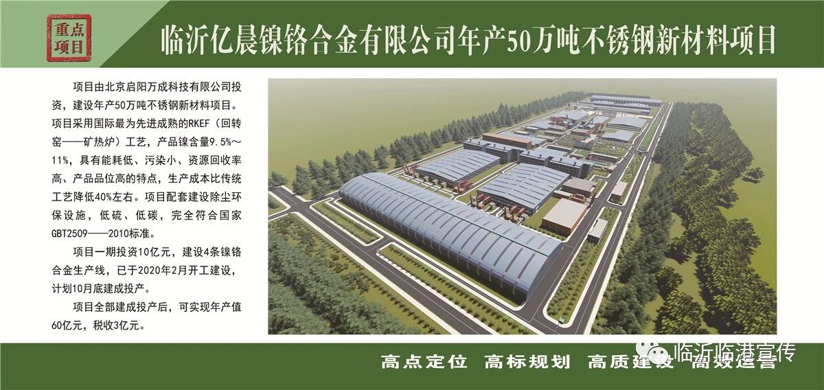 ◆临沂亿晨镍铬合金有限公司年产50万吨不锈钢新材料项目
