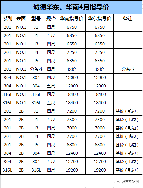 据北部湾新材料消息,今日上午,其公布了4月份指导价,具体如下: