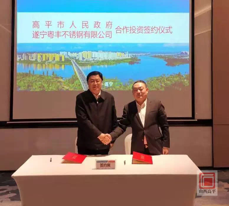 据公开信息披露,2019年12月18日,高平市市长原健深入四川遂宁粤丰不锈钢有限公司考察,与粤丰不锈钢有限公司董事长向海培就深化全方位合作、打造不锈钢全产业链园区进行深度交流,并签署了项目合作协议。
