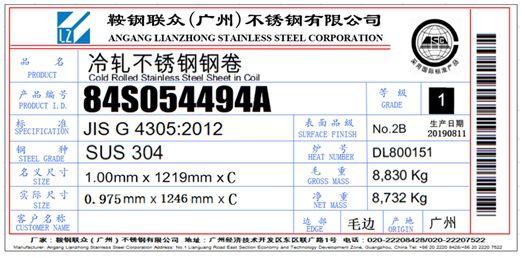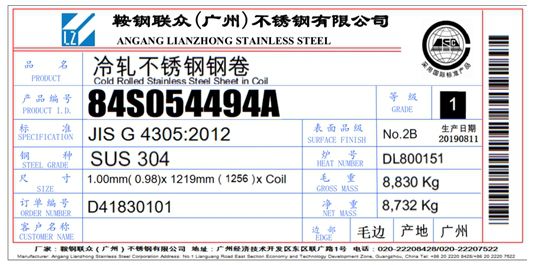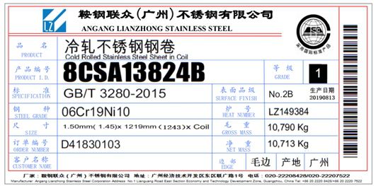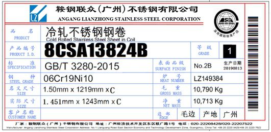 一、同意鞍钢联众(广州)不锈钢有限公司变更不锈钢冷轧卷板产品标牌。