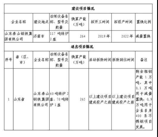 山东省工信厅发布泰山钢铁集团产能置换方案公告