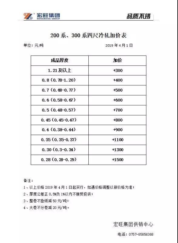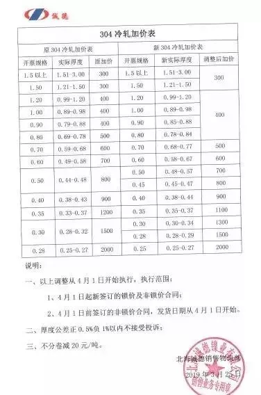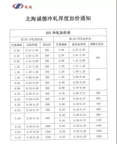 北海诚德、宏旺公布冷轧新加价政策