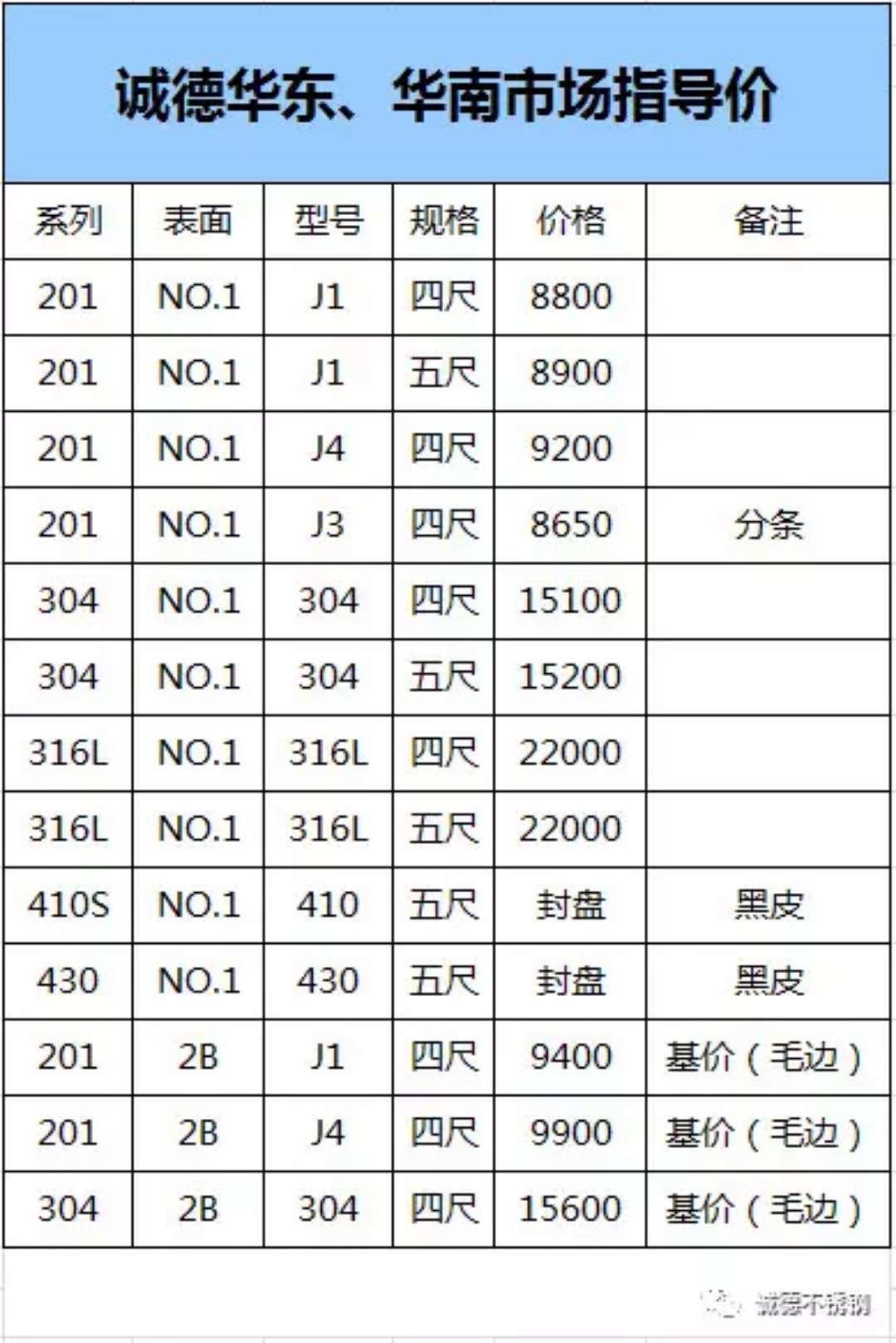 佛山、无锡、山东、福建201:四尺9200 ;304 四尺/15400