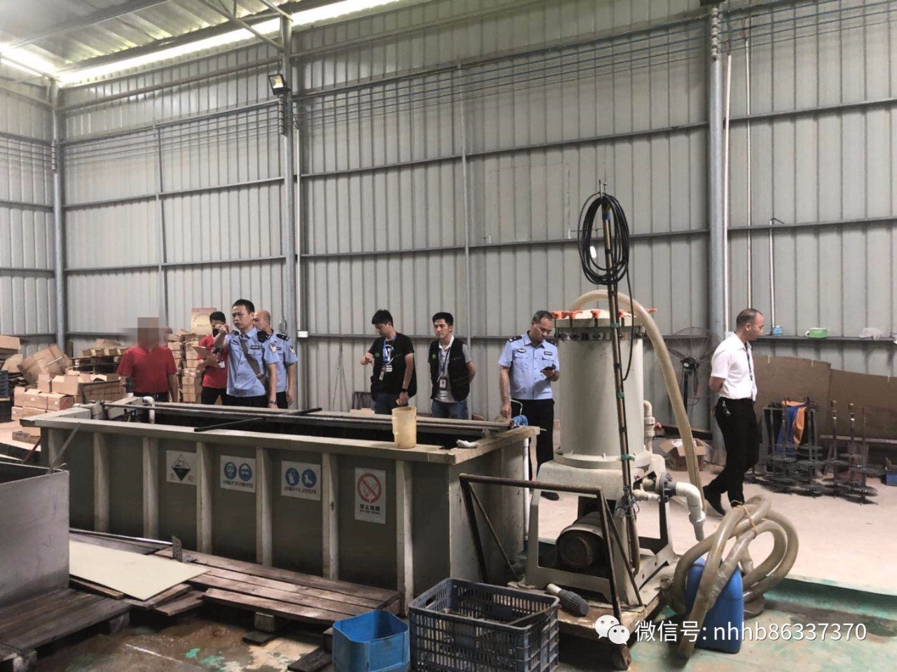 7月31日,区镇两级环保执法人员联同公安干警联合出击,对丹灶生态园区内某氧化车间的主管实施刑事拘留。