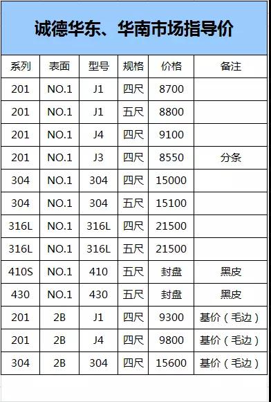 (201平盘,304上调100)