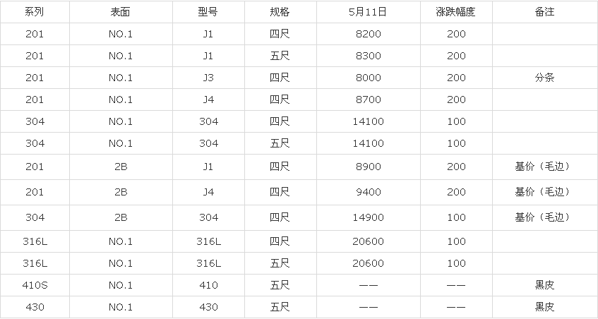 佛山、无锡、山东、福建201:四尺8700 ;304 四尺/14600