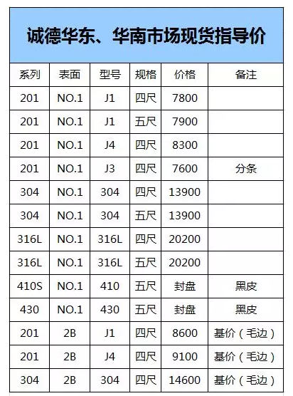 (304下调50,316L平盘)