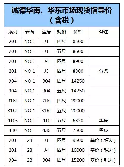 (304、316L上调100,430下调50)