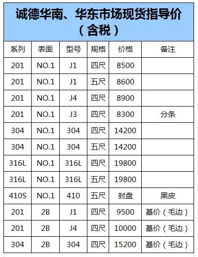 304:(4-5.6mm)13900(下调100);(5.6-6mm)13950(下调100);(6-12mm)14050(下调250)