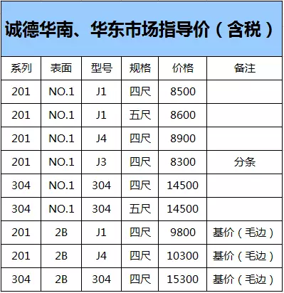 佛山、无锡、山东、福建201:四尺9700 ;304 四尺/15100,