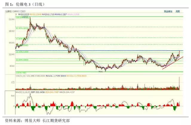 综合来看,我们认为本次上涨有很大一部分资金逐利的成分,由于基本面并没有太大的波动,盘面或将有回调需求,建议投资者以理性、谨慎为主,多头可逢高止盈。中长期来看,我们仍看好镍价表现,电解镍库存持续去化仍将引领镍价上行,但短时间内镍价的剧烈波动其实是对盘面健康运行不利的,技术面关注伦镍13000 元/吨的压力位。