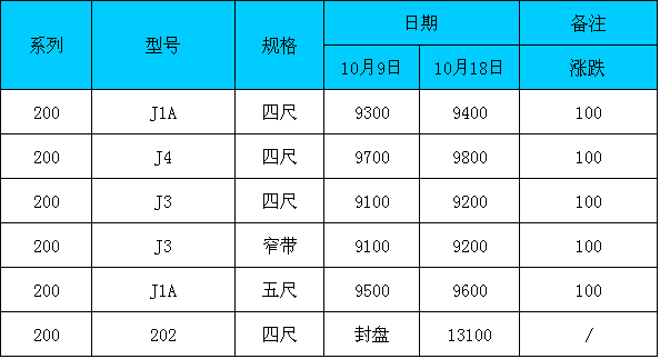 (无锡、山东、福建)201:四尺10200;304 四尺/15800;