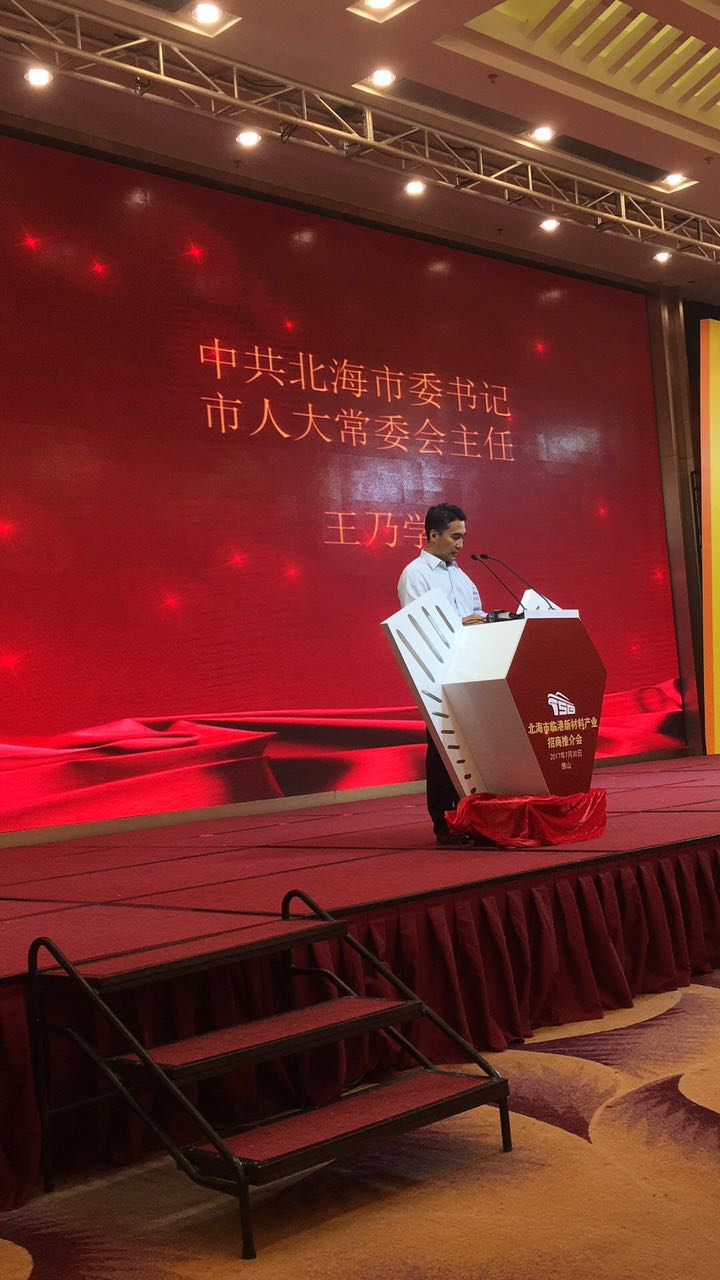 北海市委书记王乃学在致辞中重点对该市的发展情况进行了介绍。他表示,开放是北海最大的优势,也是北海加快发展的必由之路。今年4月19日,习近平总书记在北海考察时指出,“要写好新世纪海上丝路新篇章”。王乃学指出,产业是支撑高速增长的关键,我们经过精心论证筛选,推出一批符合国家产业政策、具有特色优势和发展潜力的重点招商引资项目。他表示,我们一定以优越的环境、优惠的政策、优质的服务,竭诚为广大投资者提供便利。