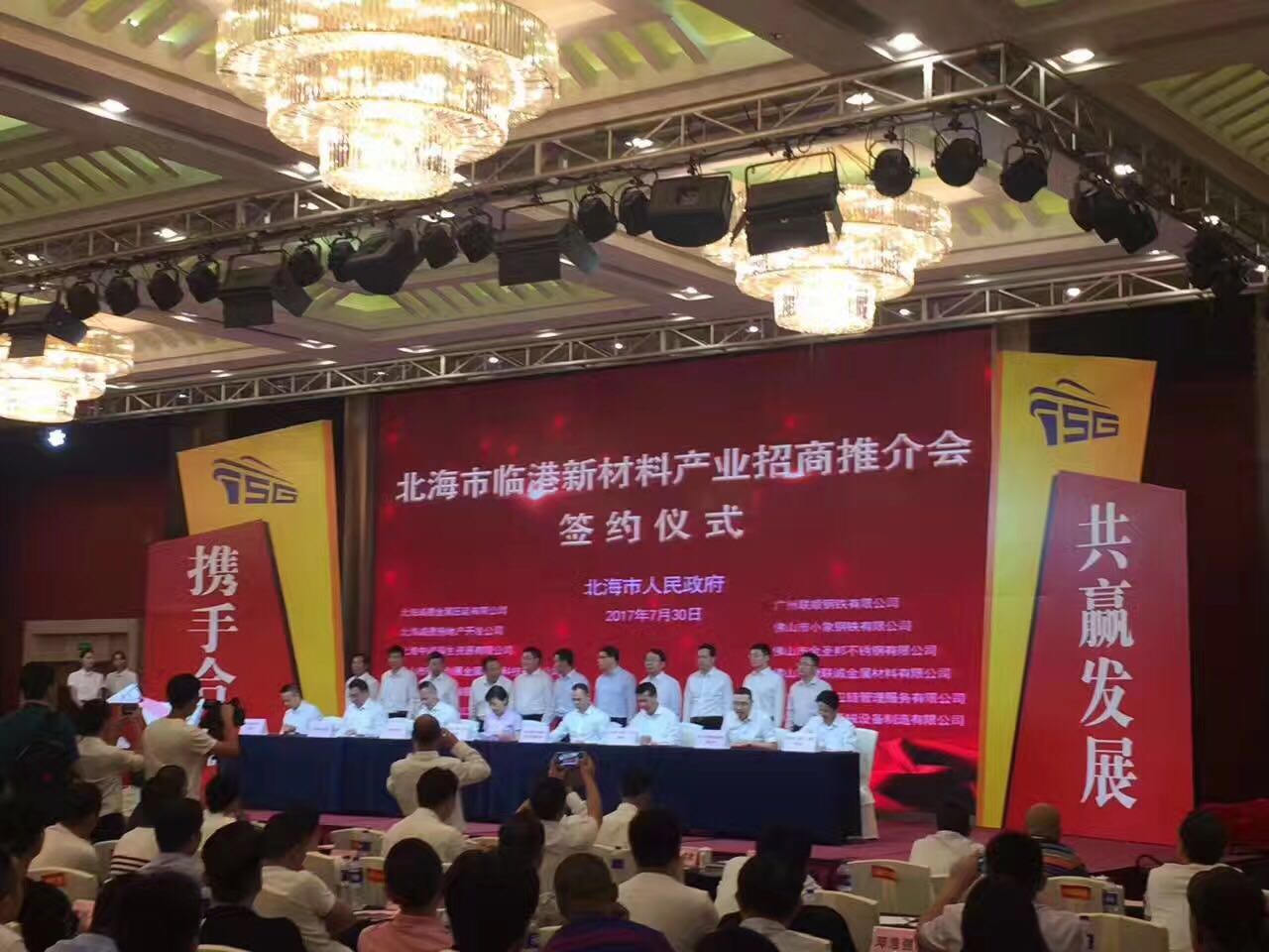 我会在昨日的推介会上获悉,现场签约项目包括北海诚德金属压延有限公司投资20亿人民币之填平补齐优化结构项目、广东御丰创展金属科技有限公司投资4.8亿元人民币之北海精密钣金加工及金属制品生产基地项目、北海市诚德房地产开发公司投资10亿元人民币之铁山港不锈钢新材料产业园综合配套项目、佛山市捷联诚金属材料有限公司投资5亿元人民币之铁山港不锈钢新材料产业园配送中心项目、佛山市金圣邦不锈钢有限公司投资3.5亿元人民币之北海不锈钢焊管、制品管生产基地项目、广州捷成供应链管理服务有限公司投资5亿元之不锈钢精密加工配送中心项目等12个,总投资达95.8亿元。