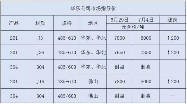 据华乐消息,今日其201指导价上调200元/吨,304持续封盘,具体如下: