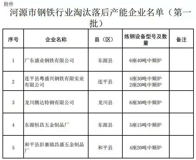 关注 || 广东河源市发布淘汰落后钢铁产能名单(第一批)