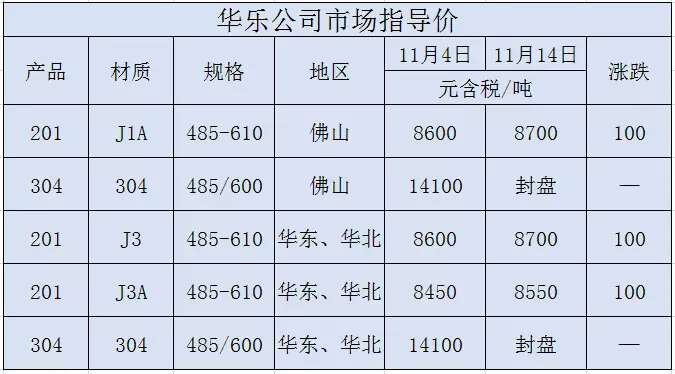 钢厂涨价进行时!据悉,今日早间华乐开出最新指导价,201上调100元/吨,304仍维持封盘状态,具体价格如下: