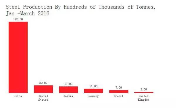 根据世界钢铁协会的数据,中国的供应了全球50%的钢铁,产量远远大于任何单一国家。