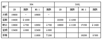 8月份不锈钢价格走势