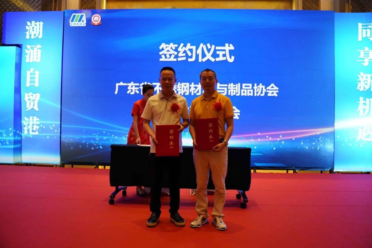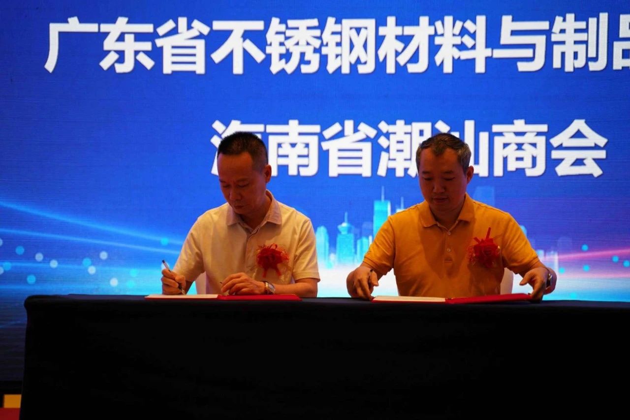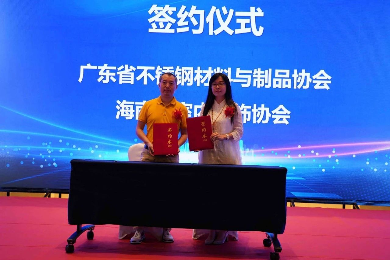 广东省不锈钢材料与制品协会林泽榆执行会长分别与海南省潮汕商会林永坚会长、海南省室内装饰协会王抒常务副会长兼秘书长签署缔结友好商(协)会协议。