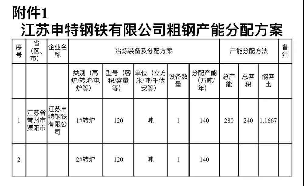 附件1:江苏申特钢铁有限公司粗钢产能分配方案