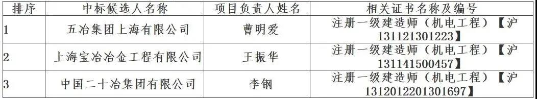 本高炉超低排放技术改造(一步)项目(标段(包)编号:0721-2165A402-B14-689/01),经评标委员会评审,确定高炉超低排放技术改造(一步)项目 的中标候选人,现公示如下: