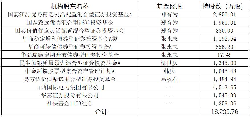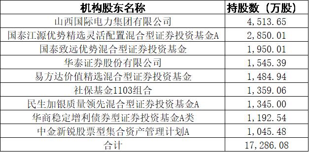 若无法获得方威支持,机构股东方面,除香港中央结算有限公司具体股东姓名不可知外,据同花顺iFinD,太钢不锈共有持股数在一千万股以上机构股东9名,累计持股约1.73亿股,分别包括5只公募基金、山西国际电力集团有限公司、华泰证券、社保基金1103组合、中金新锐股票型集合资管计划A。据天眼查,山西国际电力集团有限公司实控人为山西省国资委。