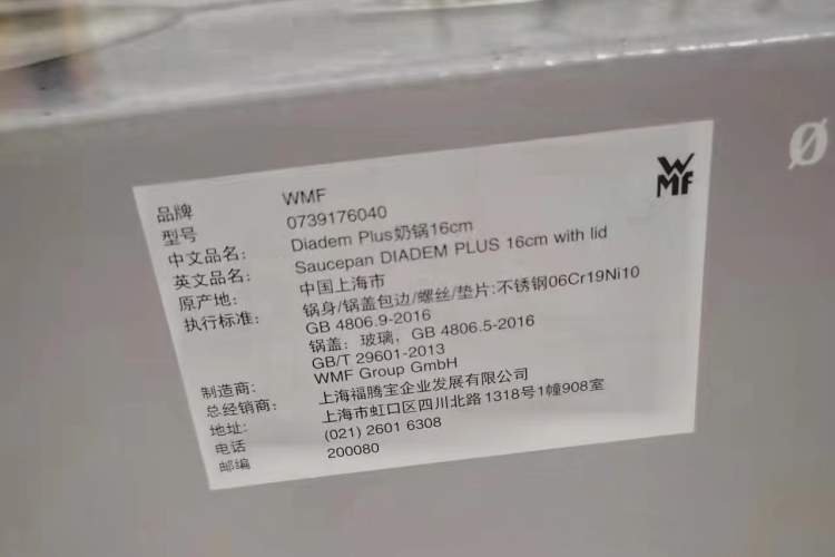 十一,吴欣(化名)在WMF天猫旗舰店购买了一只汤锅和一只奶锅,最令她欣赏的是这个德国品牌厨具采用Cromargan18/10材质,比普通不锈钢更加“经久耐用、不易腐蚀、历久如新”。而吴欣收货后发现,与她之前在香港购买的WMF锅具不同,新买的汤锅和奶锅锅身上没有标识“Cromargan”字样,外包装上执行标准是06Cr19Ni10(国标304不锈钢)。一番对比后,她认为,手中的锅远没有宣传的那么香,其材质与普通304不锈钢没啥本质区别。