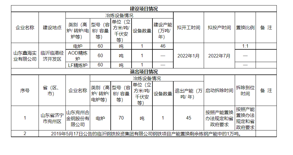 鑫海高端不锈钢项目产能置换方案公示