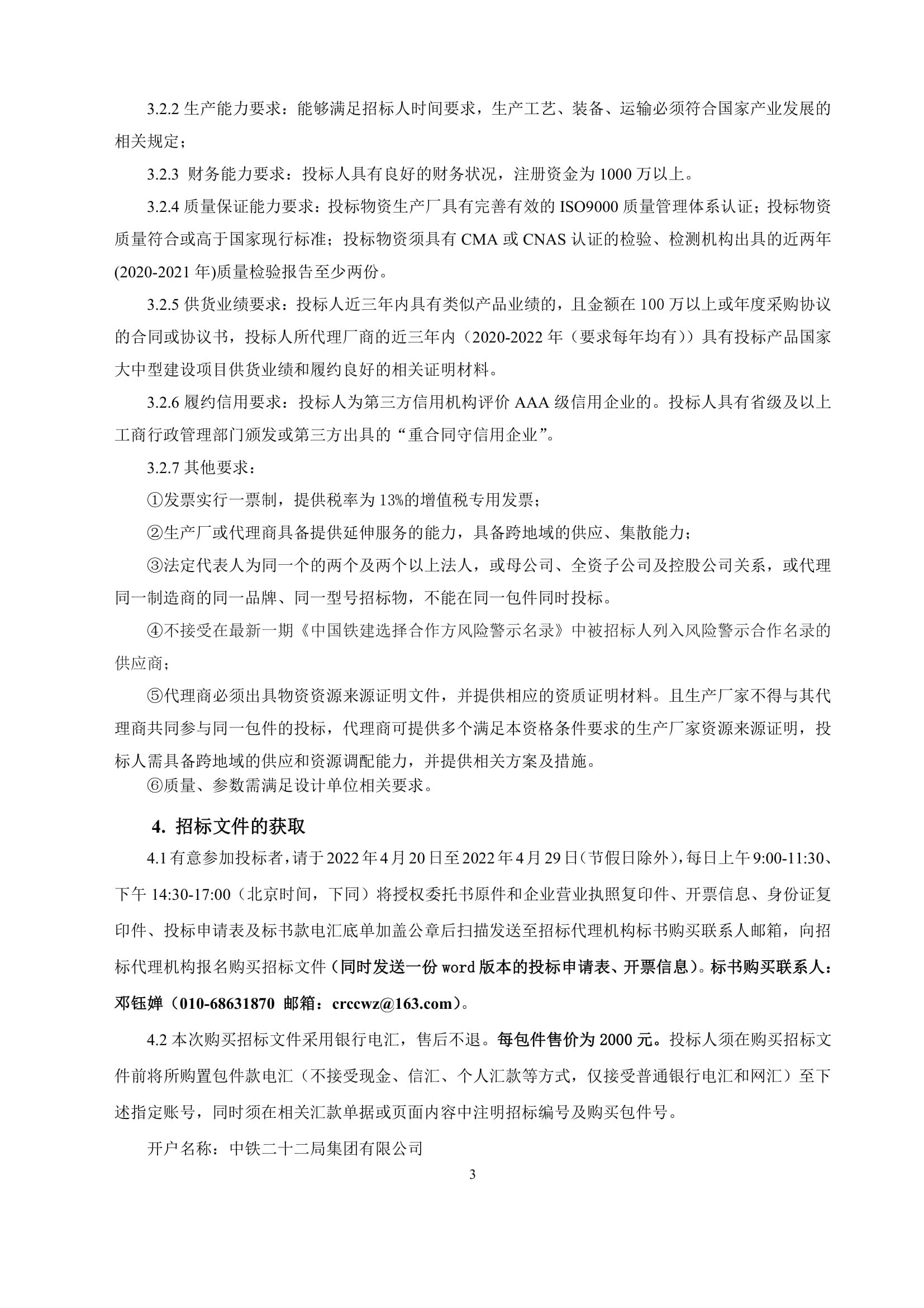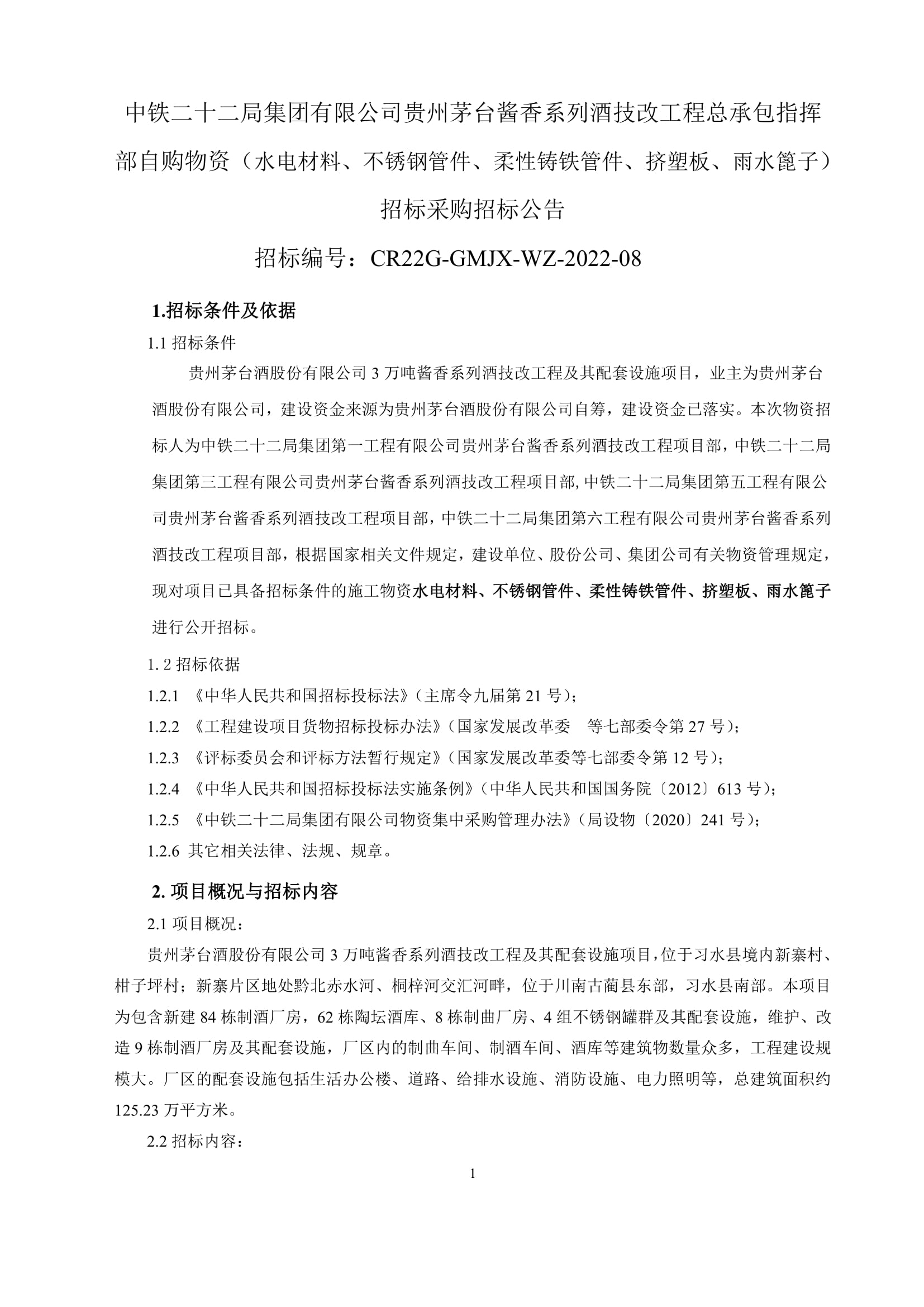 中铁二十二局集团不锈钢管件等采购招标公告