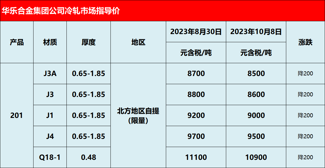 据华乐消息,昨日其开出新盘,201资源较前期下调200元/吨,具体如下: