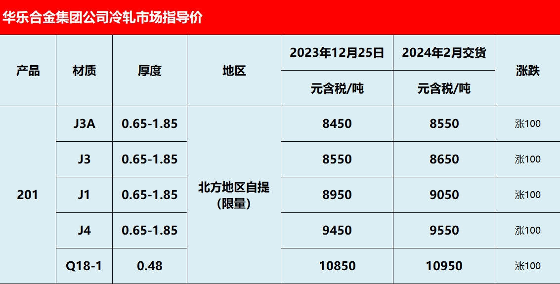 据华乐消息,昨日,其开出201冷热轧新盘价。据悉,此次盘价较前期上调50-100元/吨,具体如下:
