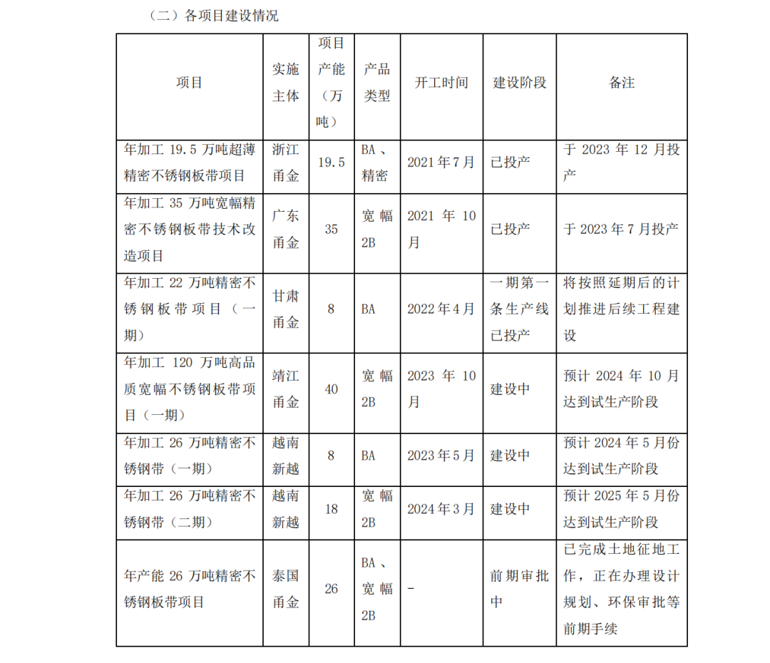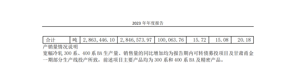 甬金股份在2023年年报中披露,面对全年不锈钢价格下行及整体市场需求恢复不及预期的压力,公司经营层稳健应对,灵活调整各生产基地的产品结构、对各项目的产能释放进行科学统筹,全年基本完成总体经营指标。