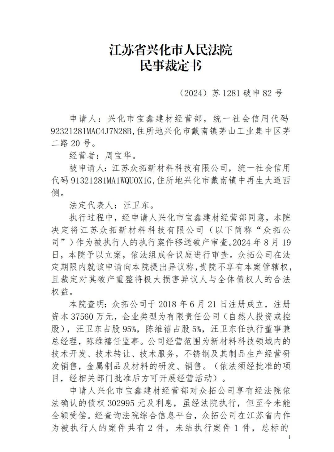 新!江苏德龙的戴南子公司被申请破产清算→