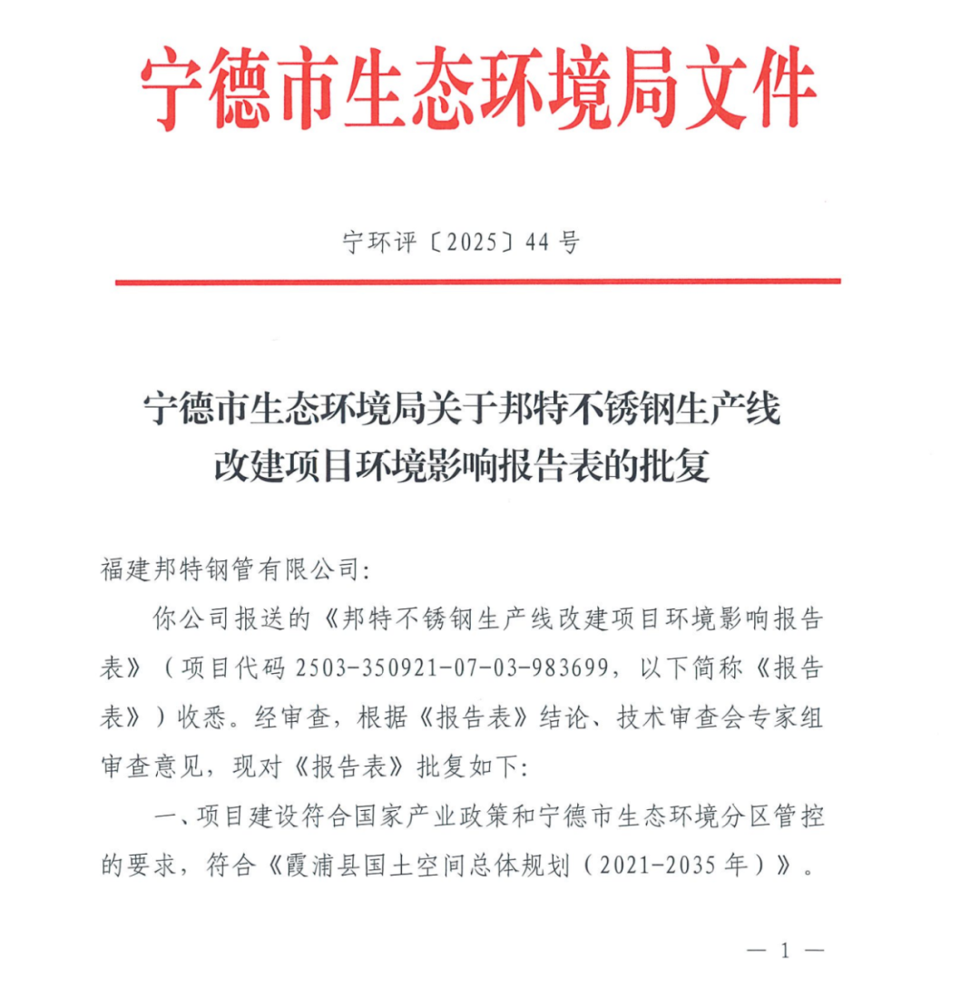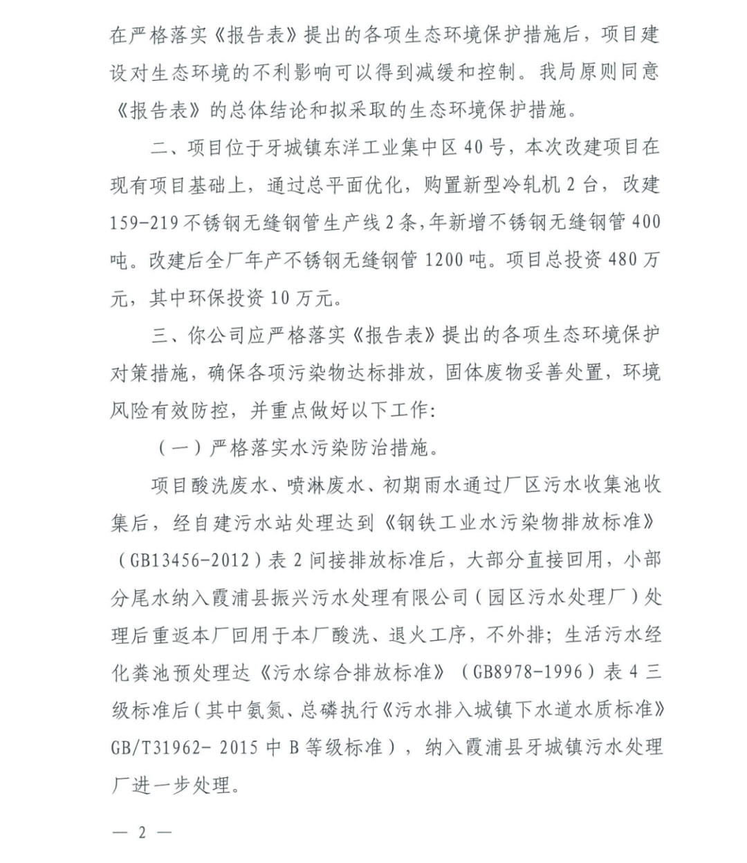 邦特不锈钢生产线改建项目环境影响报告表批复
