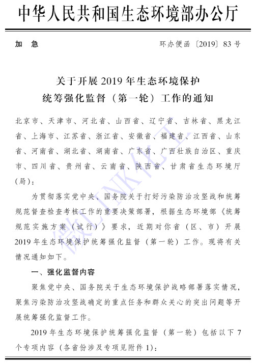 《通知》涉及7个专项内容,并且以加急文件的形式下发各地相关部门。这意味着,新一轮的生态环境大督查或将到来。