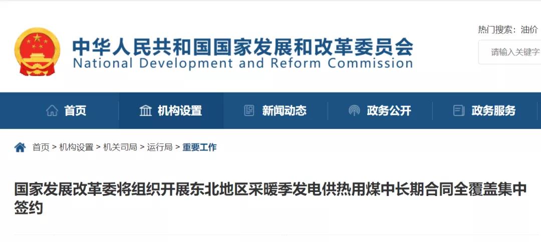 国家发展改革委将组织开展东北地区采暖季发电供热用煤中长期合同全覆盖集中签约