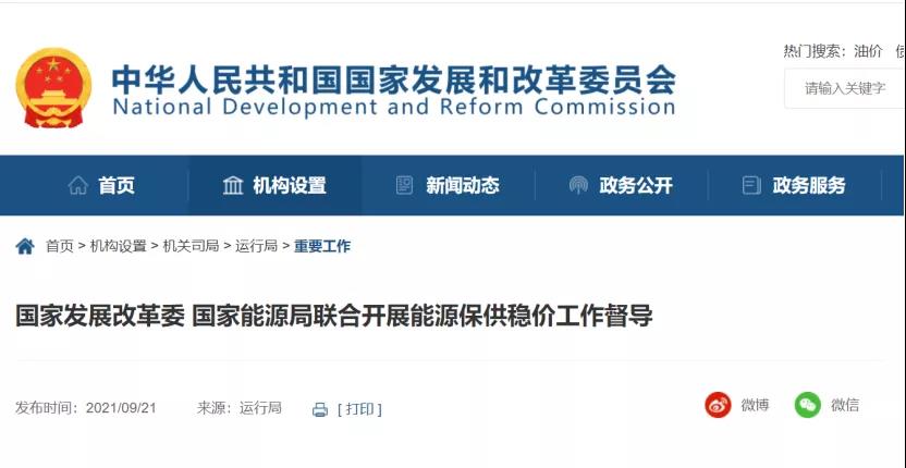 9月21 日,国家发展与改革委员会网站一连发三文!《国家发展改革委、国家能源局联合开展能源保供稳价工作督导》、《有关部门调低旺季电厂存煤标准》、《国家发展改革委将组织开展东北地区采暖季发电供热用煤中长期合同全覆盖集中签约》对能源保供稳价工作进行了严肃的整改。