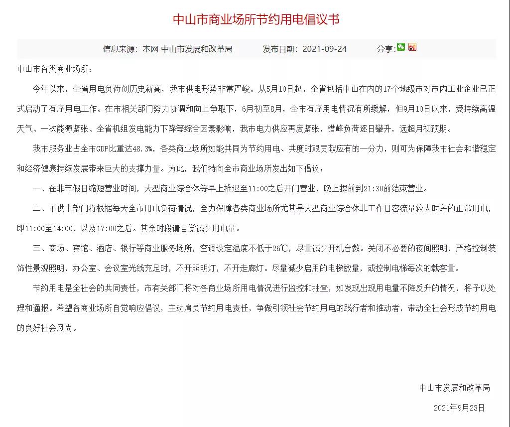 值得一提的是,近日广东多地已发布相关倡议,措施包括要求大型商业综合体在非节假日缩短营业时间等。