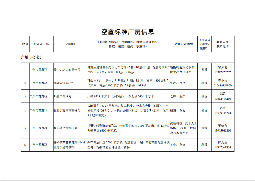 2.发布涉及的空置标准厂房信息解释权归各权属单位所有,有需要的企业可与发布信息中的联系人对接,建议在签订合同前自行核实相关空置标准厂房有关情况,包括但不限于:是否符合有关规划和环保要求、权属是否清晰合法、具备安全生产条件等,避免不必要的纠纷。