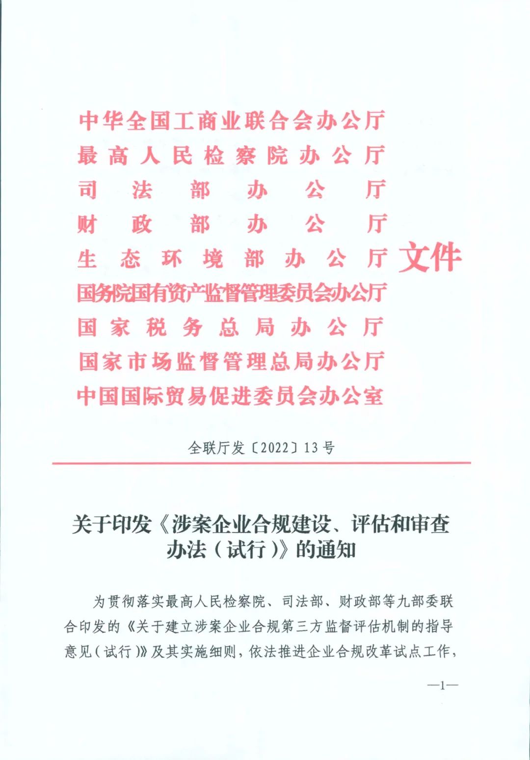 九部委发布:《涉案企业合规建设、评估和审查办法(试行)》