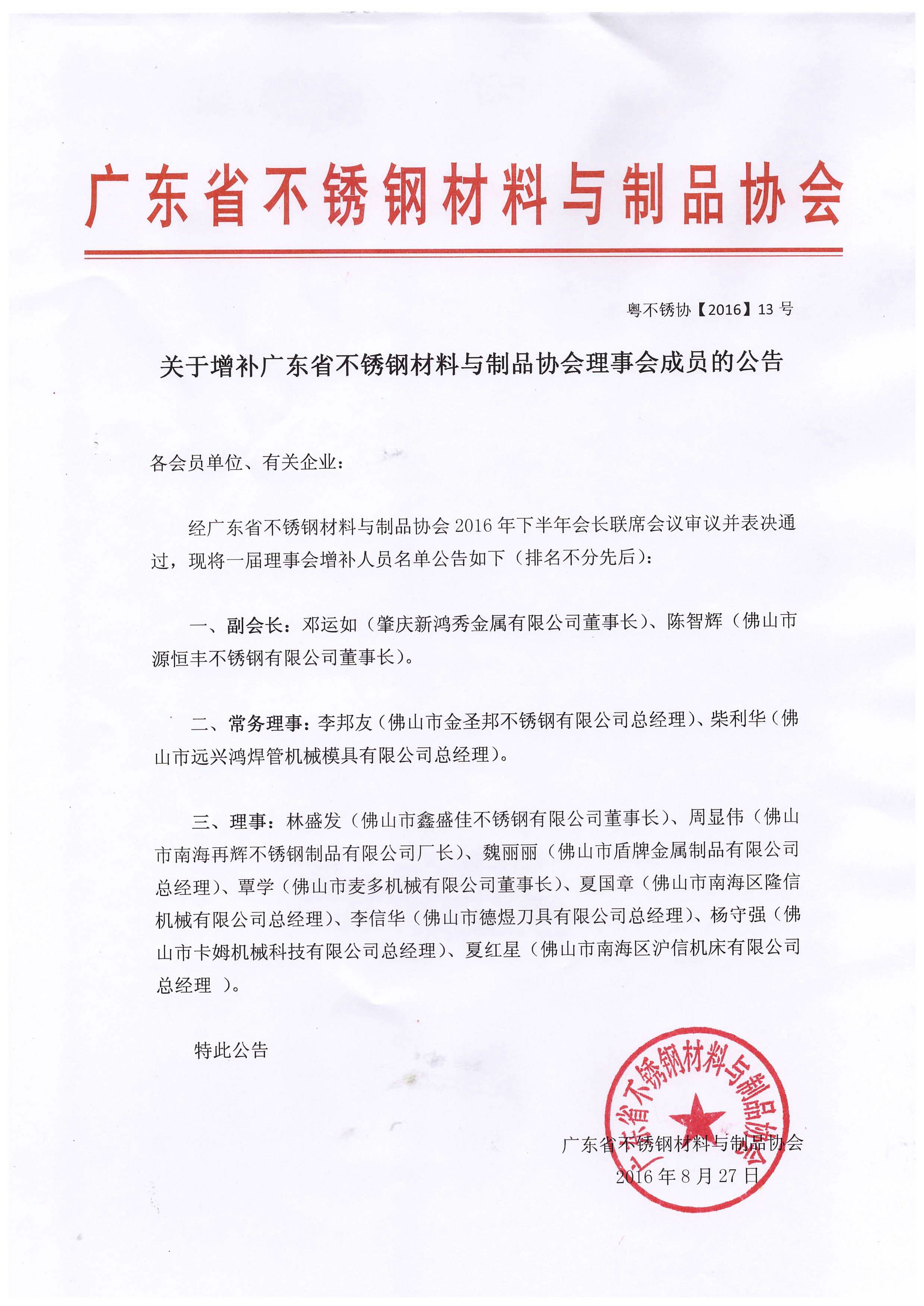 关于广东省不锈钢材料与制品协会成立换届工作领导小组、选举监督委员会的公告