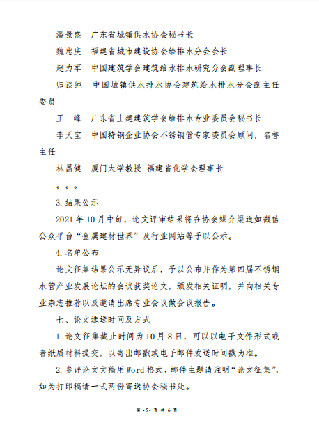 本次不锈钢给排水管道优秀论文征集活动面向产业链上所有相关从业者,由广东省不锈钢材料与制品协会、中国建材市场协会金属建材应用分会、广东省城镇供水协会等联合主办,福建省城市建设协会给排水分会、广东省土木建筑学会给排水专业委员会等协办。审核通过的论文除了获得一定的补助,获奖论文第一作者将邀请参加第四届不锈钢水管产业发展论坛做会议报告,颁发相关证明,并向相关专业杂志推荐。
